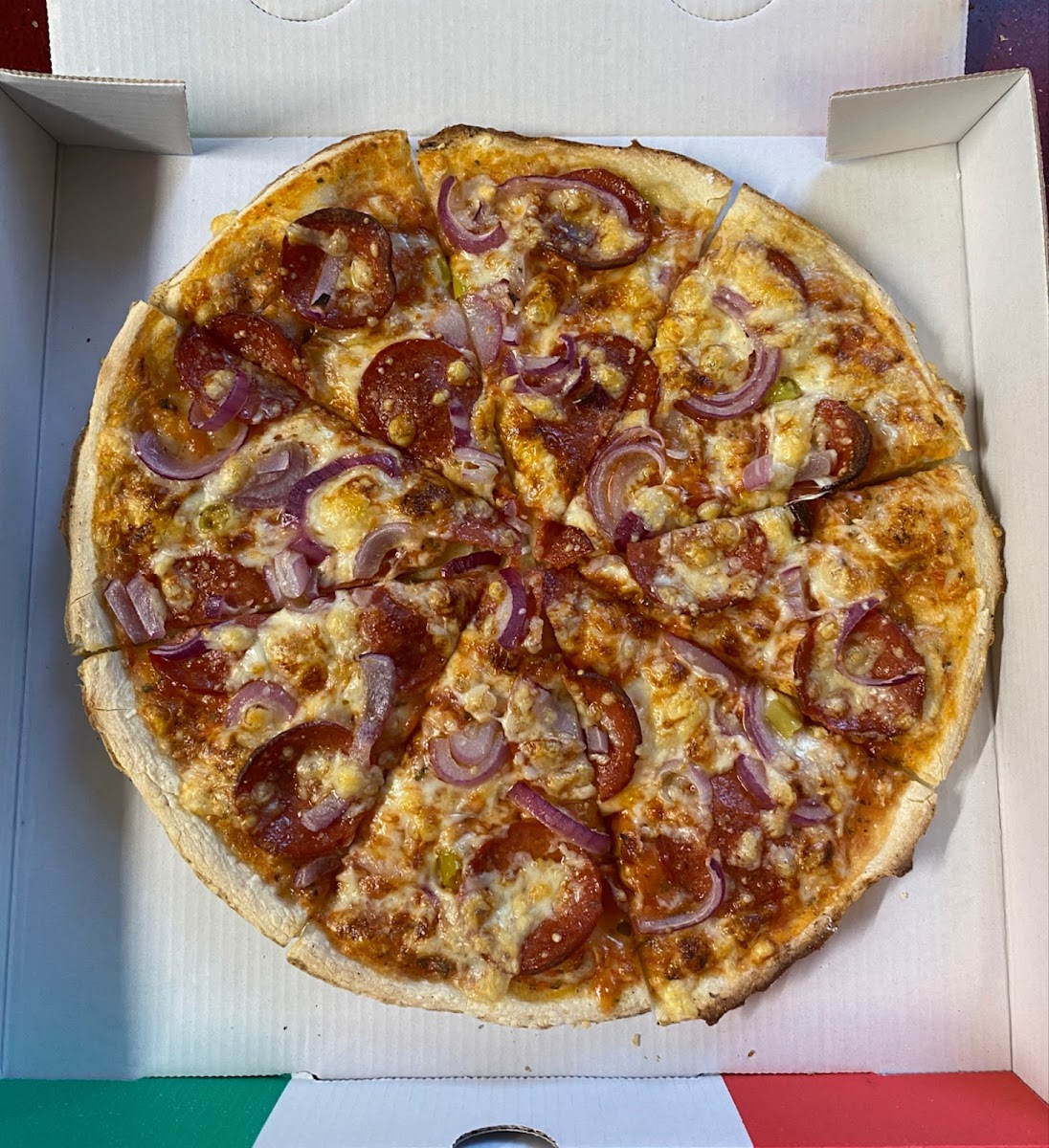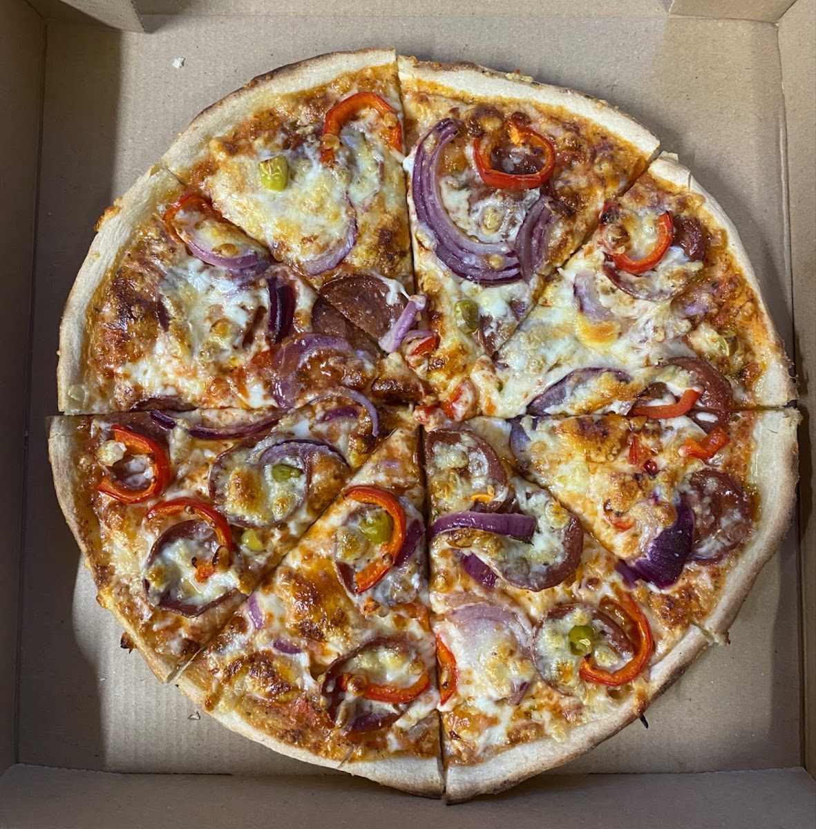 Delicious pizza! I put an online order in for 7 gumbo size pizzas and they called to confirm a pick up time. Super great service and excellent communication! Great prices and they threw in two free large drinks!